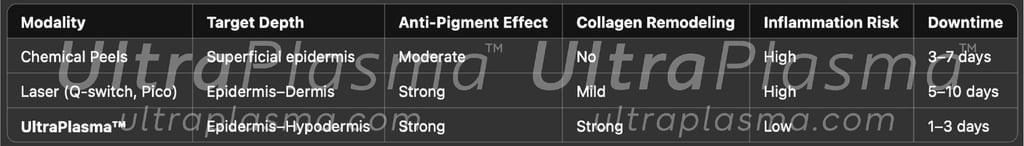 UltraPlasma™ Arc Plasma Mode targets upper epidermal melanin clusters through micro-ablation.