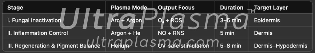 The result is precision-matched plasma outputs for different stages of fungal activity and skin regeneration.